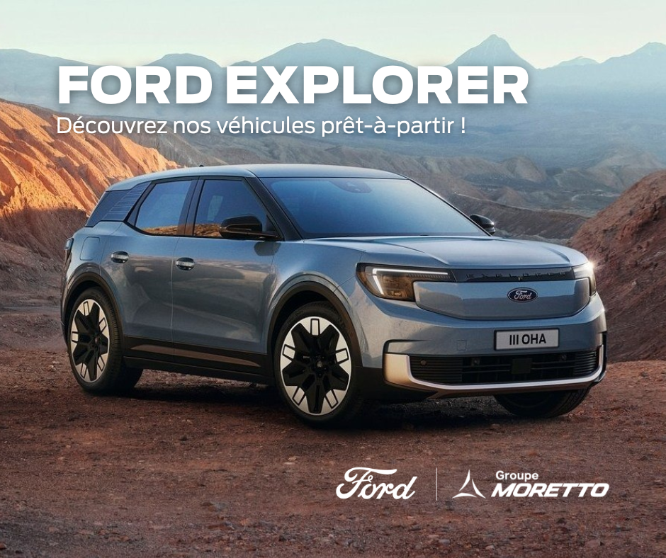 *Remise comprenant la prime Coup de Pouce. Offre valable sur les véhicules de démonstration Ford Explorer disponibles dans les concessions Ford du Groupe Moretto. Sous réserve de disponibilité des modèles.