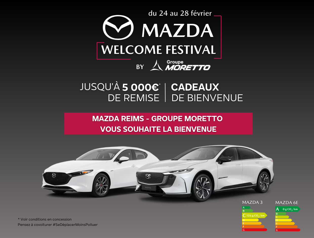 *Roulez au volant de l'un des 2 best-sellers Mazda : la sculpturale berline compacte Mazda3 ou le raffiné SUV compact Mazda CX-30 en bénéficiant d'un avantage client jusqu'à 5000€.(2)
